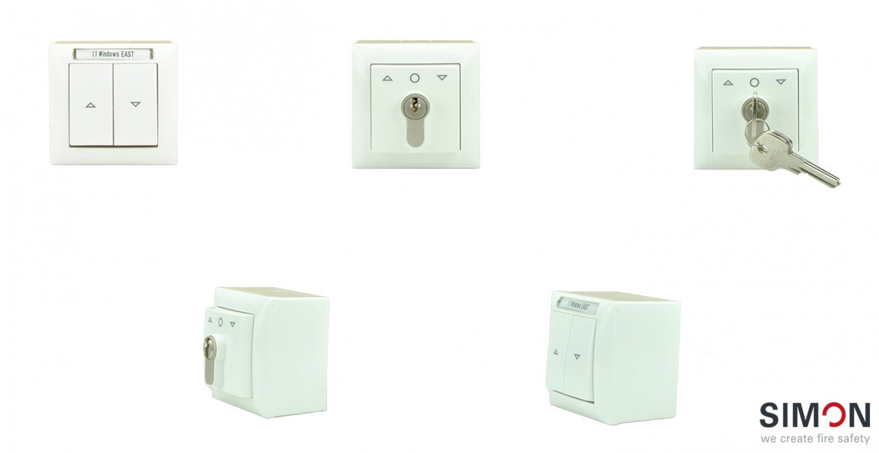 The daily vent triggerings push and key switch buttons are now improved by a better good-looking. The frame and total color will be changed from white-beige to alpin-white. The main functions and the connection wiring remains the same. The key cylinder has also the same SIMON locking which is available for years now and gurantees a consistent usage of daily vent functions.
